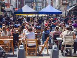 It comes after shoppers hit the British high streets and pubs as coronavirus restrictions were eased in recent weeks. Pictured, busy restaurants in Old Compton Street in Soho, London