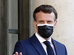 Tories voiced fury at the obstructive stance from Emmanuel Macron (pictured arriving at the G7 summit with wife Brigitte today)