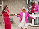 The Duchess of Cambridge, 39, cut an elegant figure in a fuchsia dress with matching shoes as she arrived to meet the President’s wife Dr Jill Biden in Cornwall this afternoon