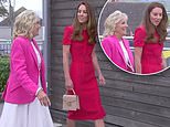 Kate Middleton was a vision in pink as she met with Dr Jill Biden at a school in Cornwall today to discuss female empowerment ahead of the G7 summit.