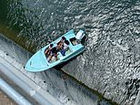 Terrifying moment boat full of revelers perches on the edge of 36-foot Texas dam before rescuers rush to save them from toxic algae-infested waters