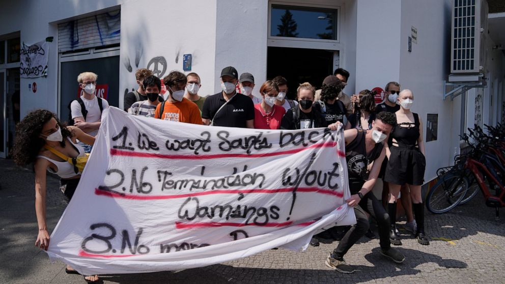BERLIN — Dozens of workers gathered outside of one of Berlin’s most-celebrated startups, the grocery delivery company Gorillas, to protest the firing hours earlier of a colleague.