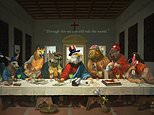 Australia is characterised by a kangaroo, the US at the centre of the table representing Jesus, takes the shape of a bald eagle, while the UK is a lion, France a rooster, India an elephant, Canada a beaver, Italy a wolf, Japan is a dog and Germany is a hawk.