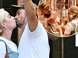 The couple shared a loving kiss on a bridge and snapped a selfie together, before collecting their 10-month-old daughter Daisy Dove and heading out to see the sights.