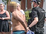 - Residents appear to attack the driver of a red Vauxhall while onlookers shout ‘Let the police deal with him’, before armed officers arrive and arrest him