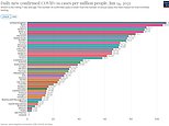 Iceland and San Marino are at the bottom of the list and the only countries to have zero cases per million.