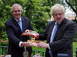 The two prime ministers celebrated by exchanging hampers of British and Australian goods, including TimTams and Penguin bars, in Mr Johnson’s garden where they gave a press conference hailing a ‘new dawn’ for UK-Australia relations.