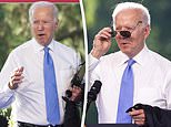 Biden arrived for his outdoor press conference wearing his signature aviator sunglasses – he gifted Putin with a custom pair. He took off his suit jacket half way through, citing the hot, sunny day.