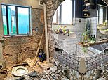In order to overhaul their house’s main bathroom, the couple completely destroyed it, floor to ceiling, pictured. Ash was in charge of the plumbing for the new bathroom