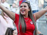 Three Lions fans with England flag face paint and cans of Stella Artois were earlier pictured strolling along Wembley Way ahead of the game