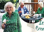 Clearly enjoying the June weather, the The Duchess of Cornwall beamed as she picked up an ice cream from a royal parks ice cream van.