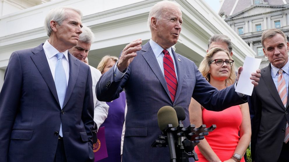 Thursday’s deal was struck by the bipartisan group led by Portman and Democrat Kyrsten Sinema of Arizona, including some of the more independent lawmakers in the Senate, some known for bucking their parties.