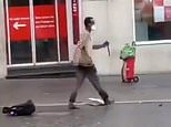 A video posted to social media showed a man, armed with a bag, attempting to scare off the knifeman by shouting at him before he disappeared off screen