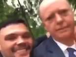 While one of the two thugs continues to yell at the camera, another can be heard shouting: ‘Please, sorry, one photo.’