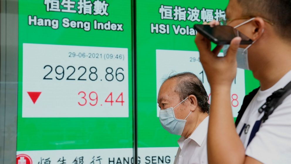 In Hong Kong, the Hang Seng index fell 0.2% to 28,948.75. Shares rose in India and and Taiwan.