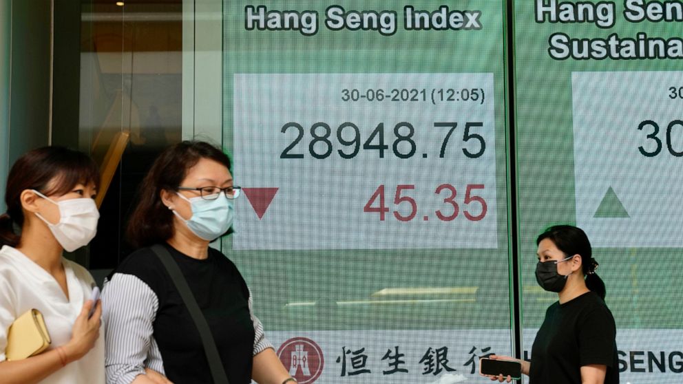 Japan’s benchmark Nikkei 225 slipped 0.5% in early trading to 28,660.33, while South Korea’s Kospi lost 0.4% to 3,283.57. Australia’s S&P/ASX 200 shed 0.4% to 7,285.10. The Shanghai Composite edged up nearly 0.1% to 3,594.53. Trading was closed in Hong Kong for the anniversary of the handover of the former British colony to Beijing.
