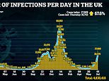 Britain’s daily Covid cases spike 68% in a week to 27,989 but deaths rise by just 5% with 22 more victims — as official figures show infections in England are now 15 times higher in young people than over-60s