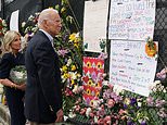 The first lady placed the flowers on the curb at the roadside memorial between some candles. Onlookers watched the event in silence. Several snapped pictures of the presidential motorcade when it departed after the visit.