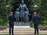 The Duke of Cambridge (left) and the Duke of Sussex (right) look at a statue they commissioned of their mother Diana, Princess of Wales, in Kensington Palace’s Sunken Garden