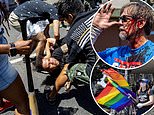 In other footage, ‘leftist counter protesters’ were seen scuffling with police who had formed a line between the two groups, reporter Sam Braslow noted.