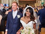 The former Blue Peter presenter, 48, shared a snap of himself looking elated as he walked his elegant bride, 30, down the aisle before an applauding congregation of well-wishers at Norwich Cathedral.