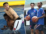 Still can’t wipe away the smiles! Gareth Southgate leads England training as the work for Sunday’s final against Italy begins but Bukayo Saka, Jadon Sancho and Co still find time for a splash around in the pool – and everyone’s grinning from ear-to-ear!