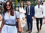 Jenna Coleman looks radiant in a blue gingham dress as she joins Frank and Christine Lampard and David Beckham for day 11 of Wimbledon