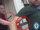 Further footage shows Smith asking arresting officers ‘please be gentle, I’ve just had an operation’ as they handcuffed him in the aftermath of the harrowing attack.