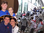Some of the families of the England team found their seats were occupied by hooligans who stormed into Wembley. The players were reunited with their families and partners after four weeks apart and spent the night partying in a lavish suite in Wembley. Jordan Pickford’s fiancée Megan Davison (pictured above) led a chorus of glamorous partners and family of players singing Oasis’s Don’t Look Back in Anger