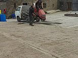 Hilarious moment farmer carefully reverses sit-on lawnmower onto a trailer – but is sent flying