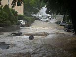 At least seven people have died and up to 50 are missing after torrential downpours in western Germany over the last three days triggered flash flooding which swept away homes and cars (pictured, flooding in Hagen, Germany)