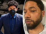 - He was seen entering court in Chicago on Wednesday wearing a blue suit with a lighter blue blazer to face six counts of felony misconduct for allegedly lying to the cops about the racist and homophobic attack