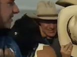 Jeff Bezos hugs a woman, believed to be his sister Christina, after returning to earth with his crew mates on Tuesday morning