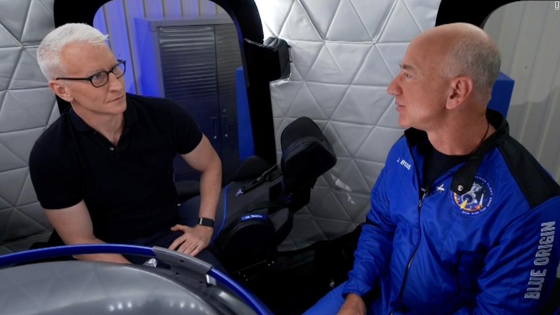 Amazon founder Jeff Bezos caught up with CNN’s Anderson Cooper after returning to Earth Tuesday, reflecting on his trip to space and the moments before takeoff.