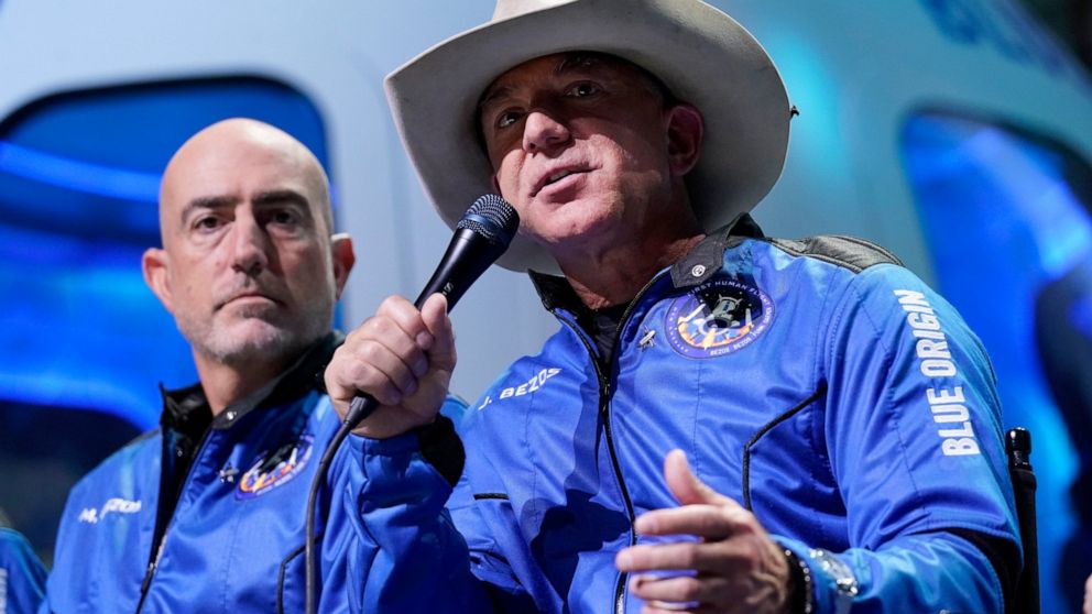 “I want to thank every Amazon employee, and every Amazon customer because you guys paid for all this,” the 57-year-old Bezos said during a news conference Tuesday after becoming the second billionaire in just over a week to ride in his own spacecraft.