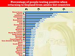 Covid positivity rates among travellers are 22 TIMES higher in some nations on the amber list compared to France (and almost 30% of all cases being spotted are from holidaymakers flying in from Spain and Portugal)