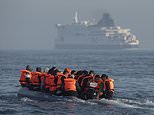 Migrants are pictured on an inflatable craft in a busy shipping lane off the coast of Dover