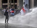 Riot police fire tear gas and water cannons on protesters in Paris as thousands demonstrate against bill mandating vaccine passports for restaurants and jabs for all healthcare workers