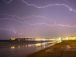 Streaks of lightning fills the sky above the seaside resort of Weymouth in Dorset as heavy rain and thunderstorms pass through overnight