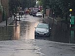 Battersea, London, flooded from the rain. It comes after lightning set fire to houses in Andover, Hampshire, on Saturday