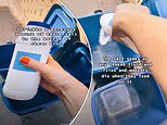Before adding the salt to the bottom of the bin to keep it fresher in summer, she thoroughly rinsed and scrubbed it out (pictured)