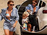 The WAG, also 35, refused to cut her family holiday short in Wales amid the ongoing scandal, as she hit the shores with sons Kai, 11, Klay, eight, Kit, five, and Cass, three, while sporting a striped bikini and denim jumpsuit.