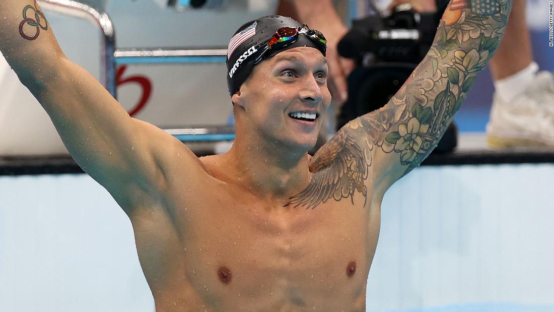 USA’s Caeleb Dressel wins his first individual gold medal in the 100 meter freestyle final
