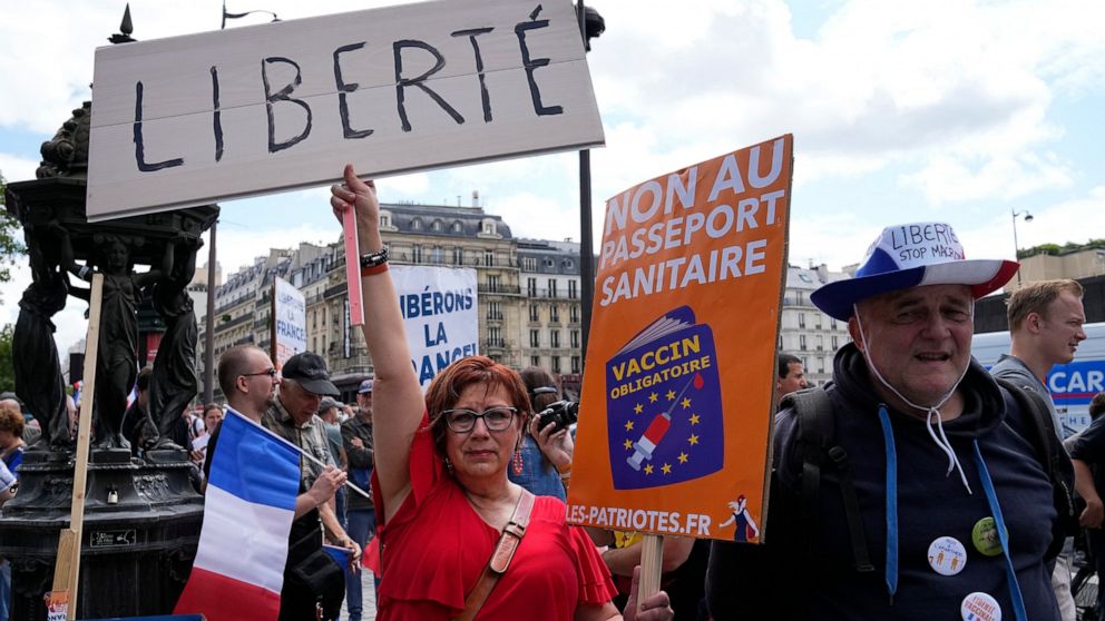 French authorities are implementing the health pass because the highly contagious delta variant is making strong inroads. More than 24,000 new daily cases were confirmed Friday night — compared to just a few thousand cases a day at the start of the month.