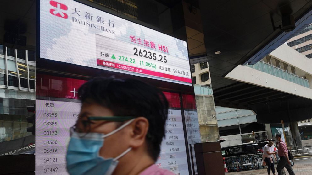 The Shanghai Composite Index lost 0.6% to 3,444.12 and the Nikkei 225 in Tokyo sank 0.9% to 27,538.50. The Hang Seng in Hong Kong tumbled 1.5% to 25,849.38.