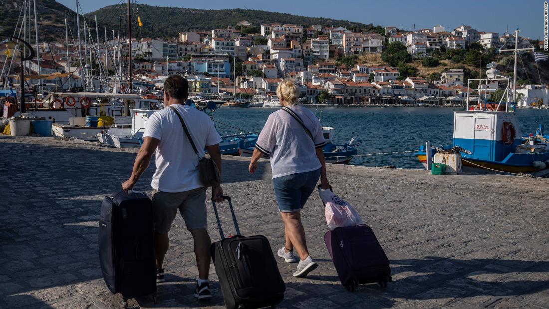 Top image: Visitors transport their luggage on the eastern Aegean island of Samos, Greece, on Tuesday, June 8, 2021. (AP Photo/Petros Giannakouris)