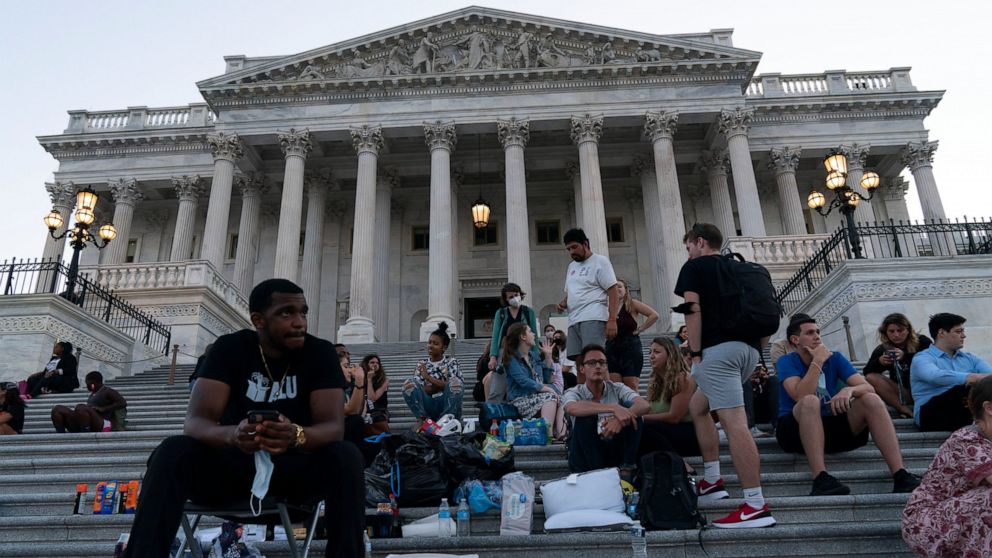 One Democrat, Rep. Cori Bush of Missouri, has been camped outside the U.S. Capitol in protest, joined overnight Monday by Ocasio-Cortez, Rep. Jimmy Gonzalez, D-Calif., and others who gave her a brief reprieve so she could rest indoors. Bush also had a brief conversation Monday at the Capitol with Vice President Kamala Harris.