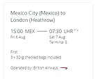 The price of the only direct flight from Mexico City to London before Mexico moves to the red list has soared to a staggering £6,878