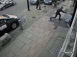 Gruesome CCTV video of the attack shows the 30-year-old being set upon just after 7pm on Monday evening.