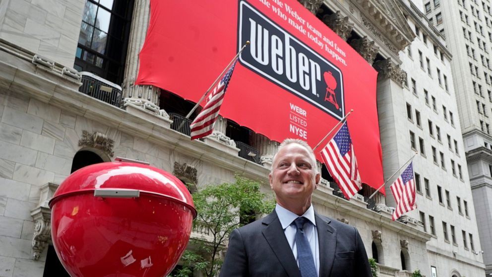 Shares of grilling company Weber have caught fire in their market debut, closing their first day of trading up almost 18%